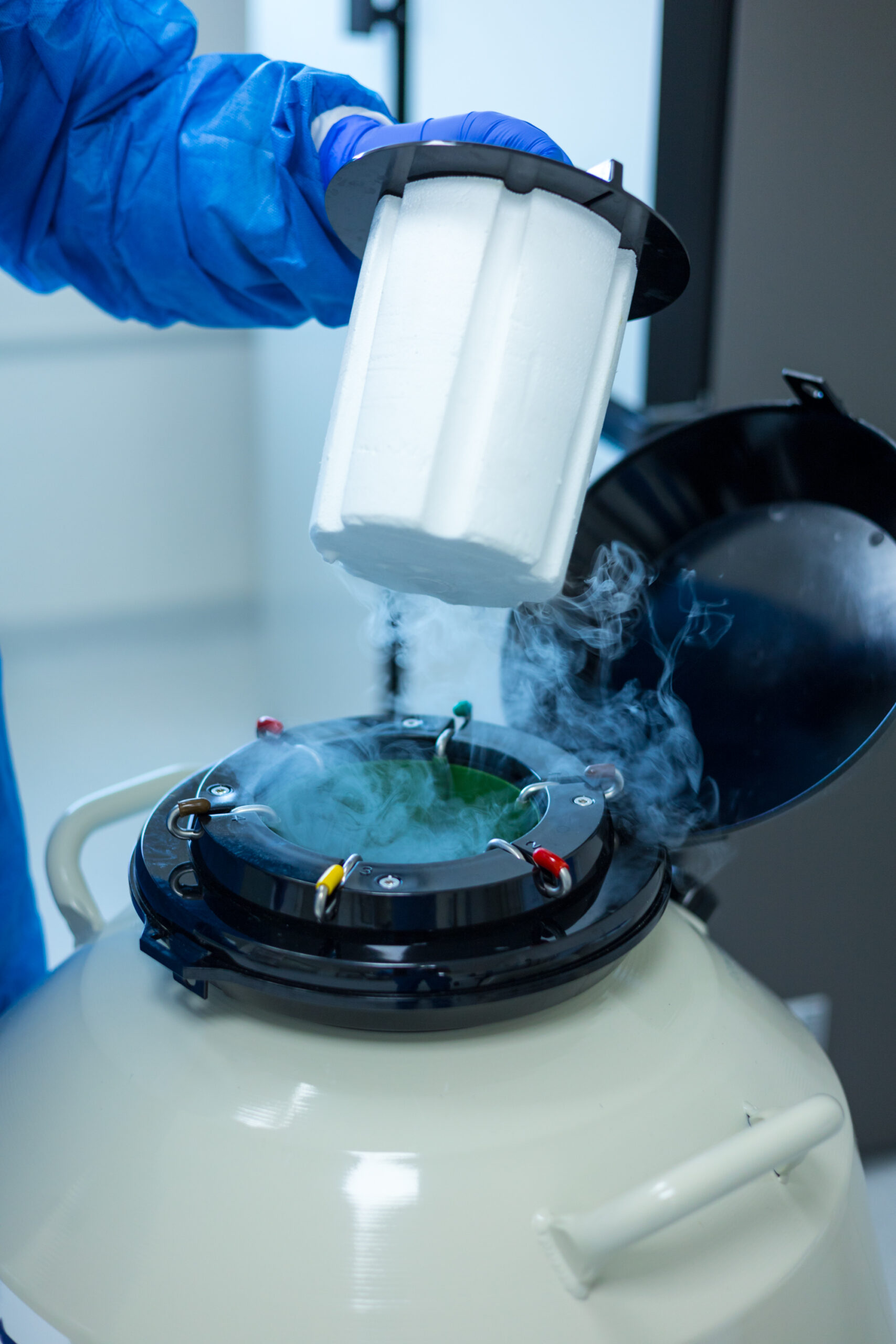 La criopreservación es un proceso que congela células a -196 °C para conservarlas sin perder viabilidad. Se utiliza en terapias regenerativas, investigación y almacenamiento de células modificadas.